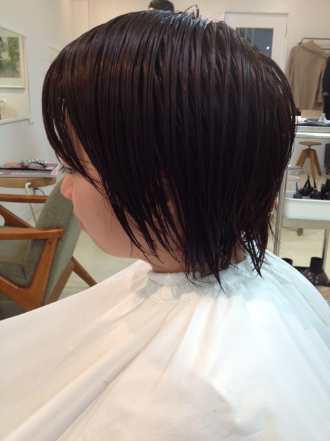 シルエットがキレイに見えるように後頭部に高さがくるようにカットしました