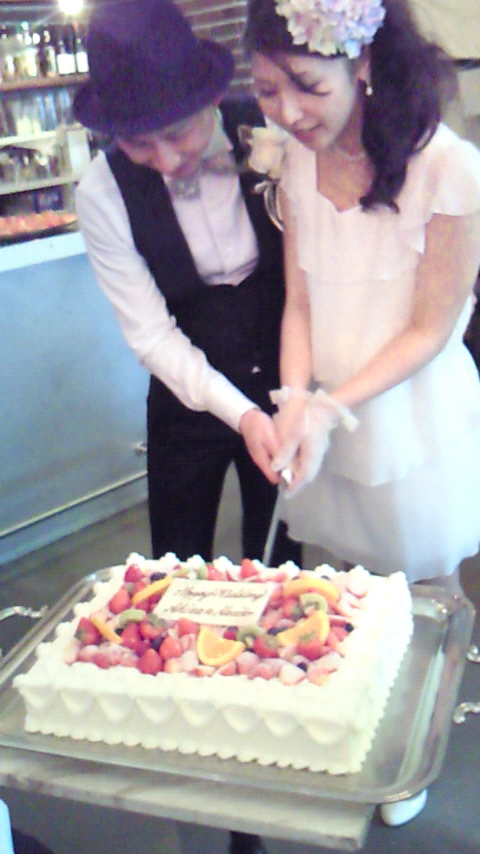 二次会のケーキ入刀