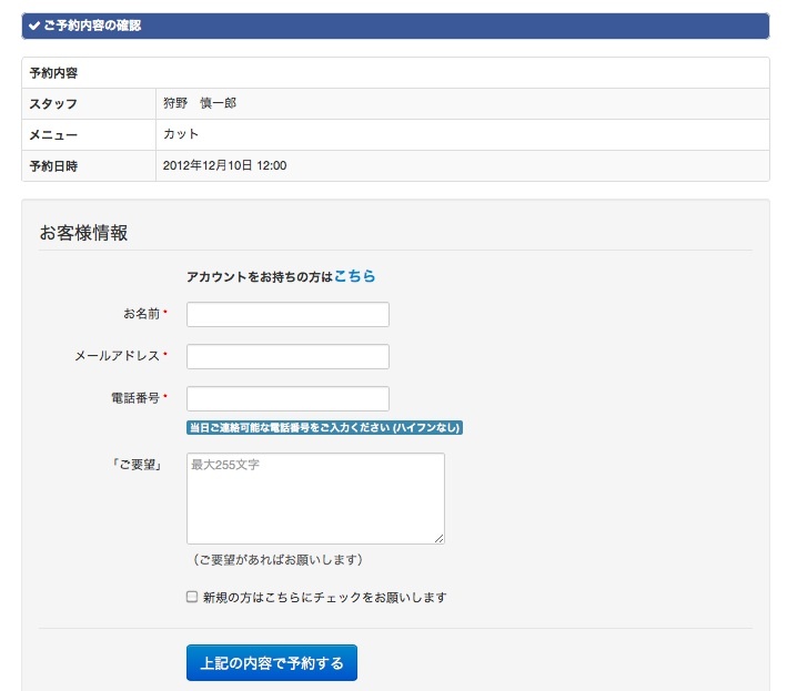 画面下にある『上記の内容で予約する』を